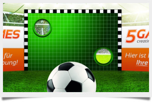 Hier wurde ein Torwandschießen Spiel für die Weltmeisterschaft 2014 erstellt. Die Besonderheiten sind: